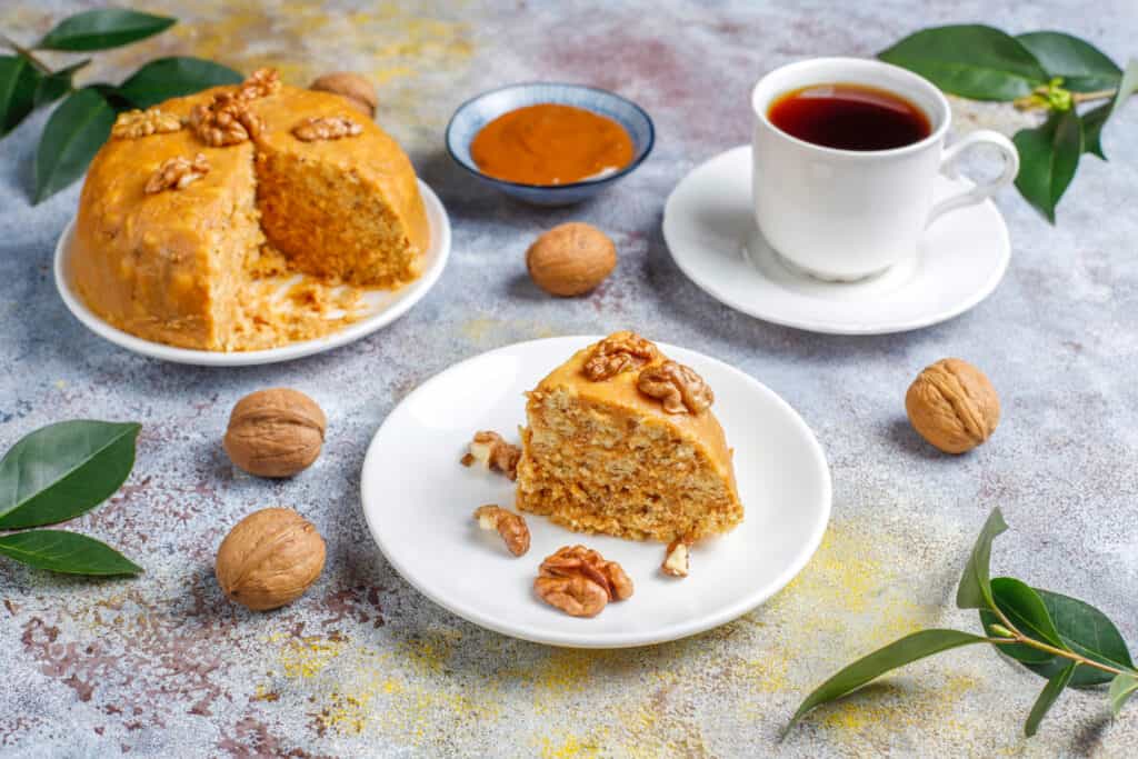 This Classic Coffee & Walnut Cake is a true bakery favourite. Soft coffee sponge layers filled with smooth coffee buttercream and finished with crunchy walnuts — it’s the perfect afternoon treat with a hot cup of coffee.