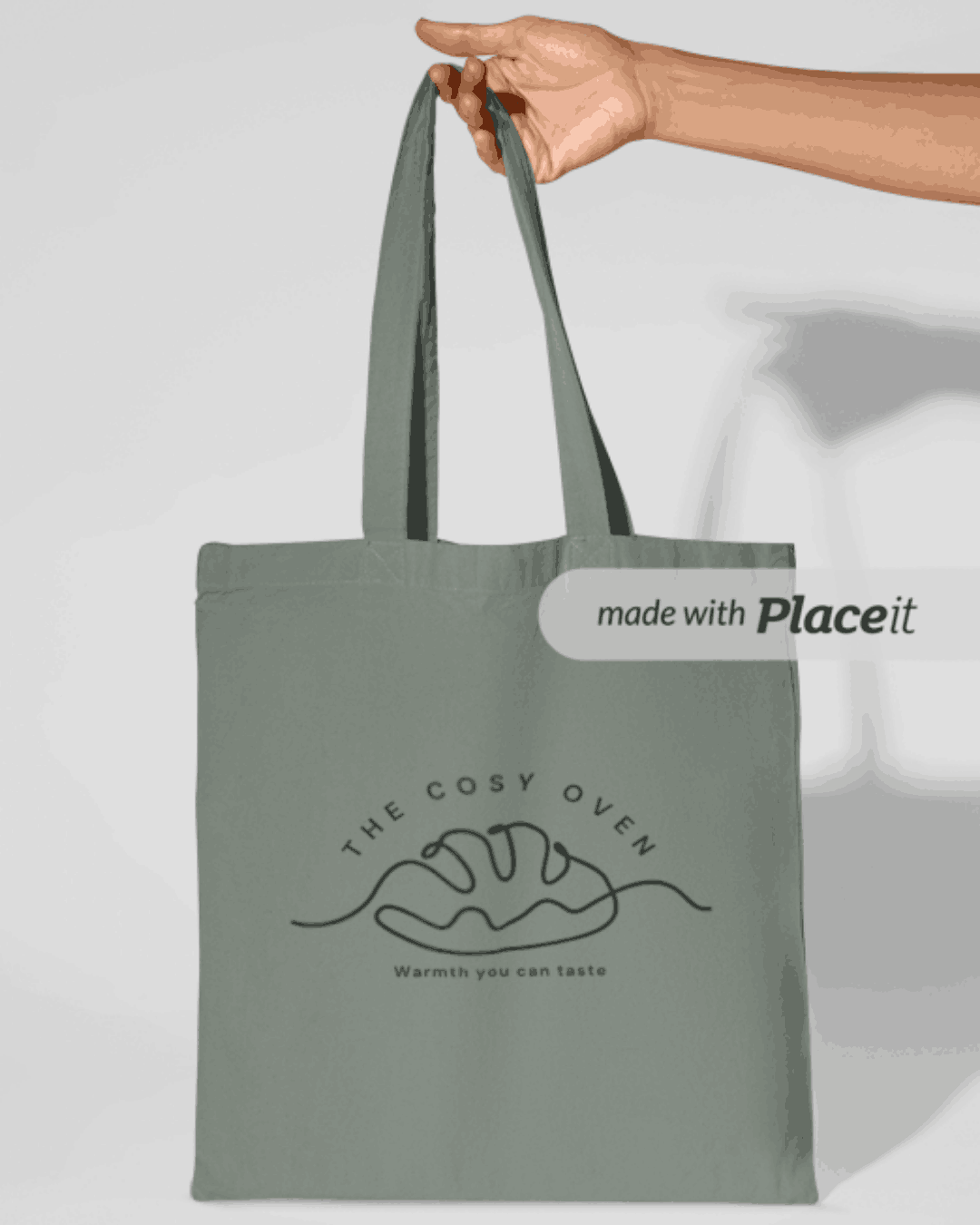 A cotton tote bag printed with The Cosy Oven logo — great for carrying your bread, pastries, or everyday essentials.
